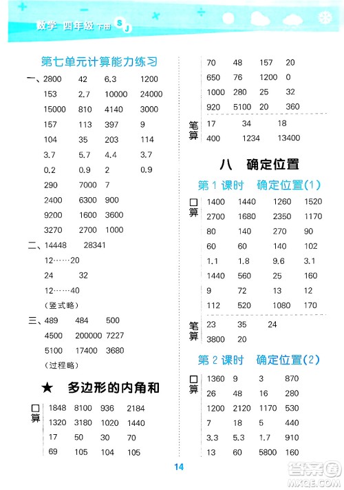 今天小编为同学们整理了山东教育出版社2025秋小儿郎小学口算大通关四年级数学下册人教版答案,本次练习将口算与笔算两种方法巧妙地交织在一起,旨在提高同学们在解题过程中的准